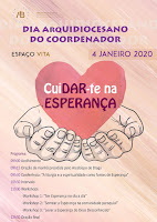 ••• DIA ARQUIDIOCESANO DO COORDENADOR: realiza-se no sábado [dia 04], das 09h00 às 12h30, no Auditório Vita – Braga, com o tema «CuiDAR-te na Esperança». Com esta formação pretende-se que os coordenadores dos diversos âmbitos paroquiais reflitam «no cuidado do próprio coordenador, sobretudo da sua espiritualidade, simultâneo à sua pastoral». Esta formação é destinada aos coordenadores dos diferentes grupos eclesiais: Confrarias, Catequistas, Grupos de Jovens, chefes do CNE, Grupos Sócio-Caritativos, Leitores, Acólitos, Grupos Corais,